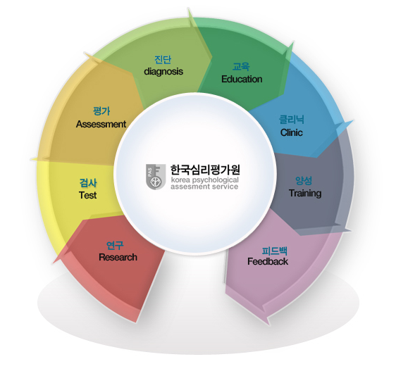 한국심리평가원은 뇌의 과학적이고 쳬계적인 분석을 통하여 각 개인의 특성에 맞는 체계적이고 차별화된 진단 및 교육으로 가장 효과적인 방법으로 개인을 포함한 가족 및 사회,기업 등의 집단에서의 다양한 목적으로 가장 적합한 방법론을 만들어 가겠습니다.